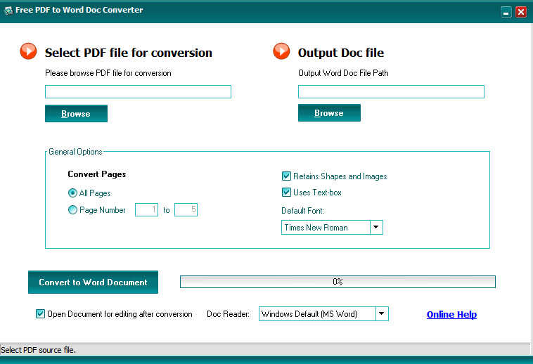 Uno dei programmi più semplici da usare che ho trovato sul web è Free PDF to Word Doc Converter
